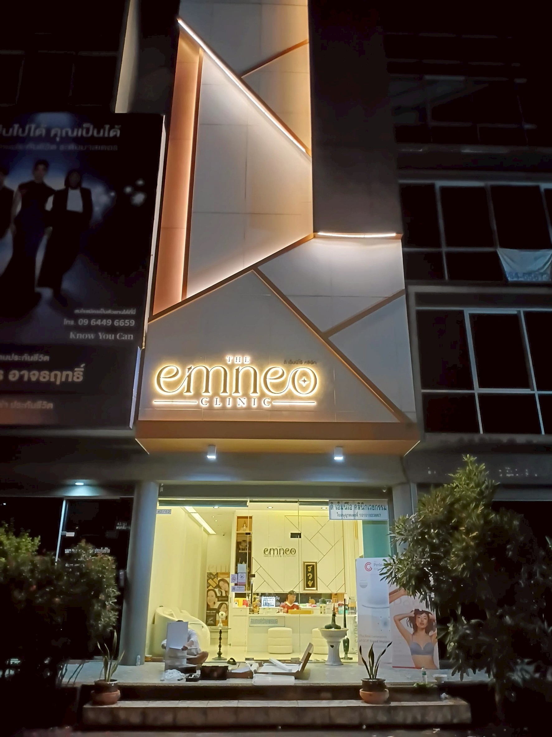 การติดตั้ง: ป้ายจะต้องถูกติดตั้งให้มีระยะห่างจากผนังเล็กน้อย (เรียกว่าการ “ยกขา” หรือ “ลอยตัว”) เพื่อให้มีพื้นที่สำหรับแสงที่จะส่องออกมาและสร้างรัศมี (Halo Effect) ด้านหลัง